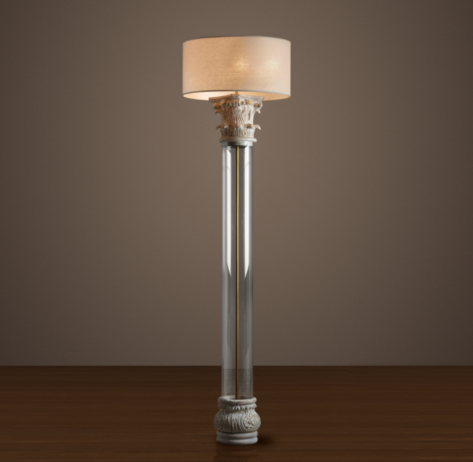 Corinthian Capital Glass Floor Lamp Weathered White